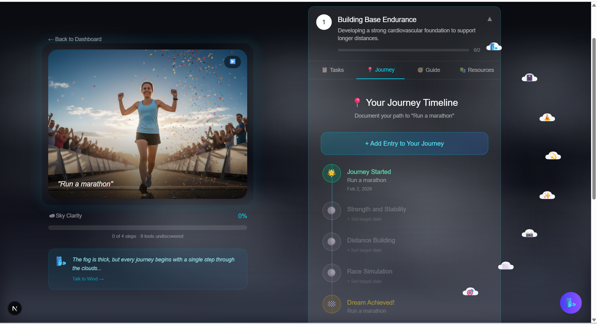 Beyond simple imagery, our system generates a live path for the user—a dynamic roadmap that motivates them to arrive at their vision, helping users not just see the goal, but navigate the journey to achieve it.